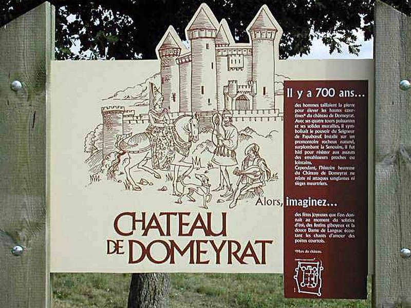 Depuis plus de 800 ans, le château de Domeyrat domine fièrement le village du haut de son piton rocheux ! Son imposante silhouette, visible de loin, impressionne et fascine depuis d’innombrables générations.